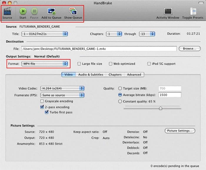Handbrake is a 100% free, open-source, GPL-licensed, and multithreaded video converter for Mac. Handbrake can deal with most common multimedia files, DVDs or Blu-rays and convert them into MP4 or MKV formats encoded with H.265, H.264, H.265 MPEG-4 and more. It also contains some device profiles, which let you convert videos to iPhone, iPod, Android and more with a few mouse clicks. There are advanced options for you to set the video and audio parameters. Other advanced features like title/chapters and range selection, Chapter Markers, Video Filters and more may be also useful for you. Handbrake is simple, easy and fast.