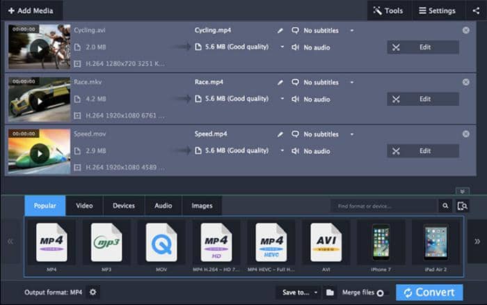 With fast conversion speed and straightforward interface, Movavi Video Converter for Mac becomes one of the best Mac video converters. For small size video, it can convert in just a few seconds. Same with DVDFab Video Converter, this converter tool lets you to convert video to a lot of formats like MOV, AVI, MP4, etc. and many devices from Apple, Microsoft, Samsung, etc. But it cannot convert videos to 3D or 4K format. It contains some essential editing tools for you to stabilize, rotate, and crop your video creations.