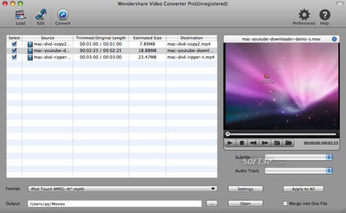 Wondershare Video Converter Pro for Mac can convert videos to various devices and video/audio formats, including SD, HD and 3D, for playback on different players at fast speed. It also can convert videos to be compatible with applications like iMovie, FCP, iDVD etc. It can directly convert audio files to MP3, M4A, FLAC and more audio formats. It has a built-in video editor for you to personalize your videos: you can trim, merge and crop the video, add effects, adjust brightness, contrast, and saturation, and import subtitles. Its interface is clean and simple, so even novice users can learn its features easily. All the above features make it one of the best video converters for Mac.