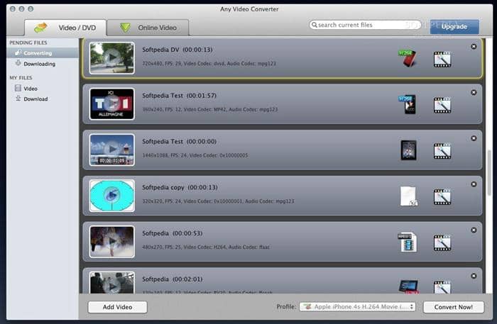 Any Video Converter is a free Mac video converter which supports 100+ input formats and 160+ output formats, including output devices like iPad Air, iPad Mini, Sony PSP and more. It is also a free video to audio converter and audio CD Ripper which can extract audio tracks from videos and rip audio tracks from CDs. It is free but it still contains many editing tools for you to trim, crop and rotate, combine videos, to add subtitles, audio tracks, watermarks and special effects. The only weakness of this video converter is that its conversion speed is not as good as its competitors like DVDFab Video Converter.