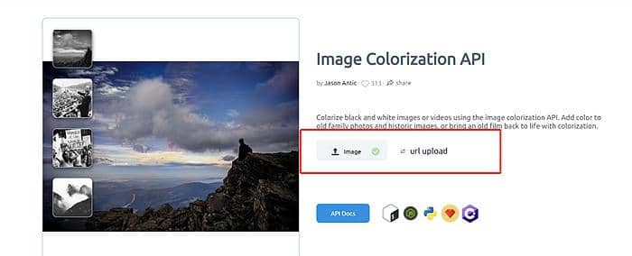 You can click on the “Upload” button to upload your black and white photos via a photo URL. Alternatively, you can go to the “File” tab and select the “Upload Image” option to add your photos from the computer