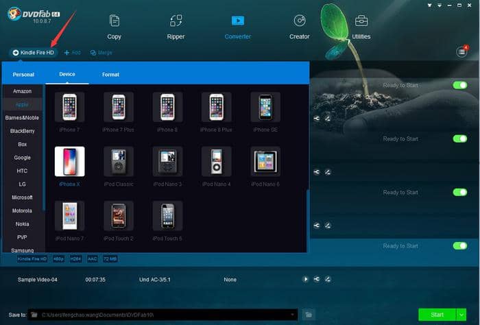 Step 3 — Click the Profile Switcher (top left corner) to choose the a device or a video format from the built-in Profile Library. This Profile Library includes all the most popular smart phones, tablets, PDAs, game consoles from major brands, such as Apple, Samsung, Microsoft, LG, HTC…and it is still growing on a regular basic as there are new devices announced. All users need to do is to select his/her device from this library and then the software will take care all the rest. This is insanely helpful to the users that are not technically sensitive.