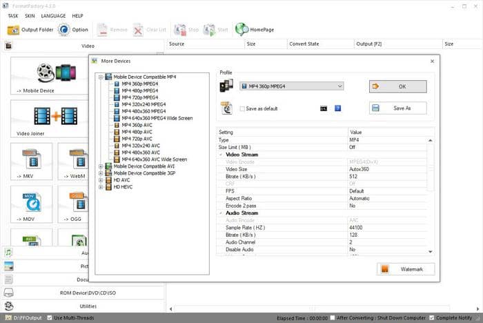 Format Factory — Format Factory is also a decent multimedia file converter software which has a long development history. It not only converts videos between different formats, but also convert audios and images from one format to another. This is to say, if you have a video which you want to play on your smart phone and only to find the file format is not supported by your device, then this software can help you with that problem. Just throw the problematic video to Format Factory and convert it into the smart phone ready video, like an MP4 video, and then you should be ready to rock. There is one thing worth a mention, although being a freeware, Format Factory needs to cash in to sustain its regular product evolution and maintenance, which is why sometimes you may notice some ads on it.